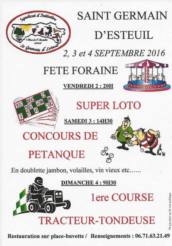 - Dimanche 4 septembre 2016 : Course de tondeuses, plus d'informations en cliquant ici.