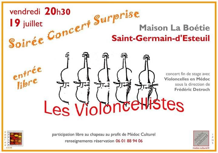Cette soirée sera organisée en tant que concert de fin de stage à l'issue des Master Classes violoncelle sous la direction de Frédéric Detroch avec les Violoncelles du Médoc.