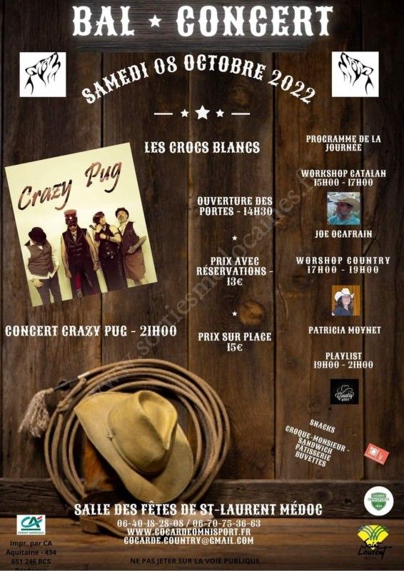 Venez vous divertir le SAMEDI 8 OCTOBRE 2022, bal concert organisé par la cocarde section country.