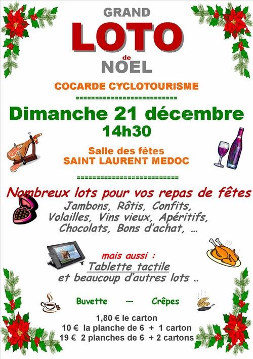 Loto de Noël organisé par la Cocarde Cyclotourisme.