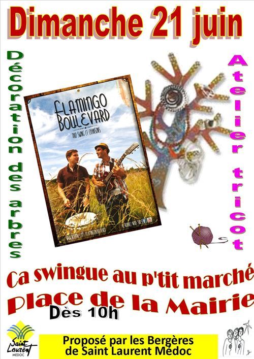 Atelier tricot et décoration des troncs d'arbres en musique avec le groupe Flamingo Boulevard !