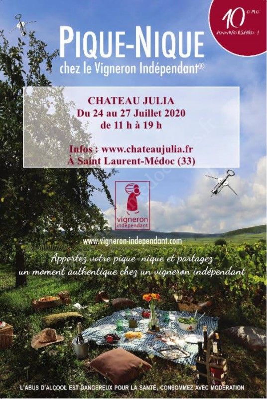 Vous amenez votre pique-nique et nous vous fournissons le vin (Le Petit Julia-Haut-Médoc-2019) avec modération !!