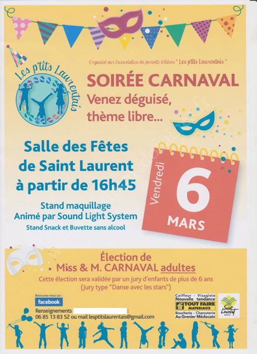 Soirée Carnaval organisée par l'Association des Parents d'Elèves "Les P'tits Laurentais" animée par Sound Light System.