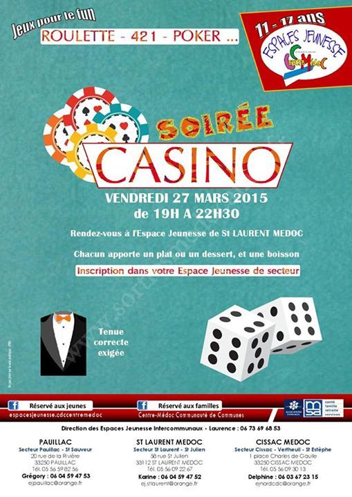 Soirée Casino pour les 11 à 17 ans organisée par Les Espaces Jeunesses.