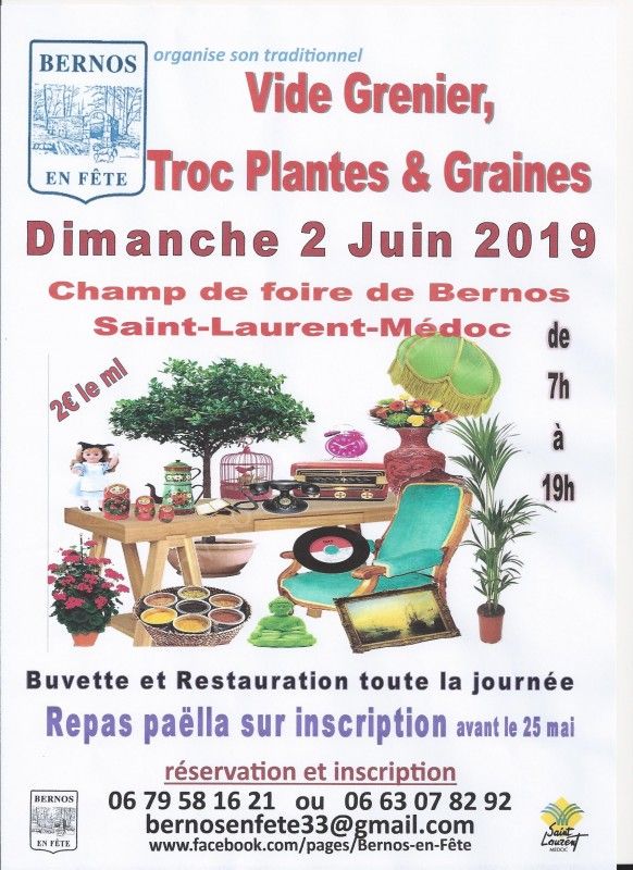 Bernos en fête, organise son traditionnel Vide grenier et troc plantes et graines le dimanche 02 juin 2019
