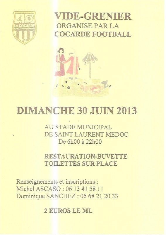 Vide grenier organisé par la COCARDE FOOTBALL de Saint Laurent Médoc au stade municipal
