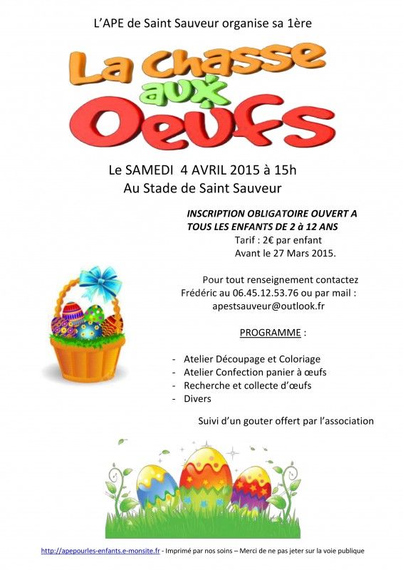 Nous organisons pour la 1ère fois une chasse aux œufs sur le site du Stade de Saint Sauveur.