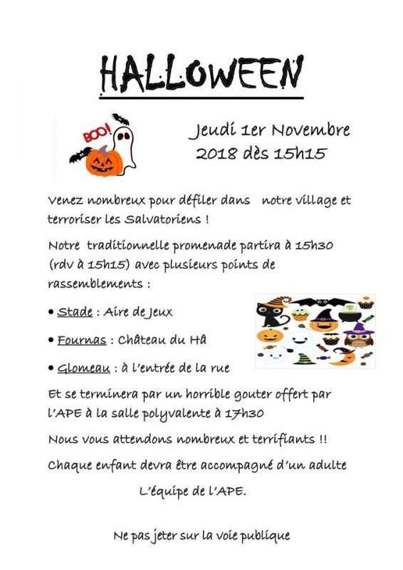 Venez nombreux pour défiler dans le village et terroriser les Salvatoriens.
