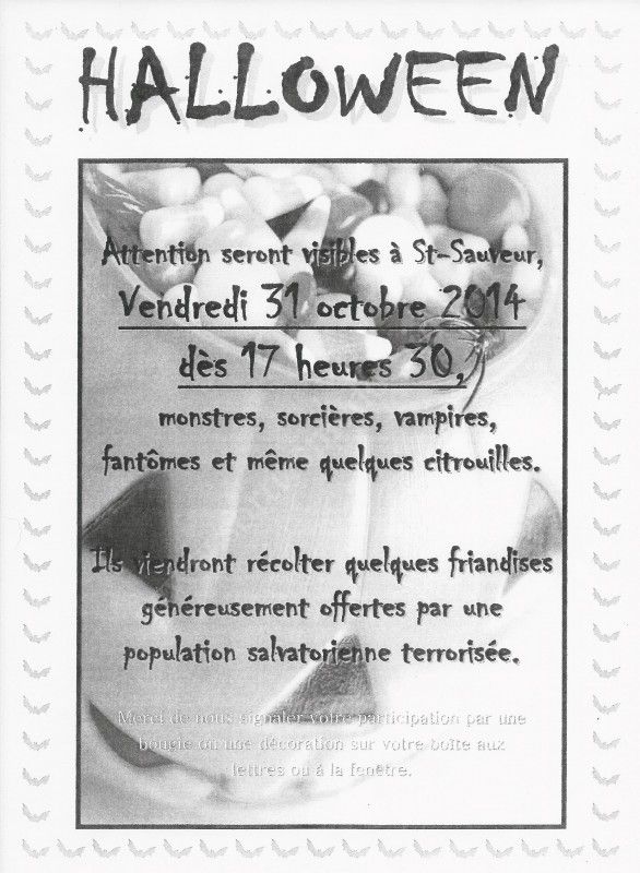 Attention seront visibles à Saint-Sauveur ce vendredi 31 octobre, monstres, sorcières, vampires, fantômes et même quelques citrouilles !