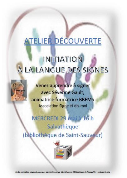 De plus en plus utilisé dans les structures petite Enfance, venez vous initier à la langue des signes grâce à l'intervention et à la pédagogie d'une professionnelle animatrice et formatrice BBFMS SEVERINE GAULT;