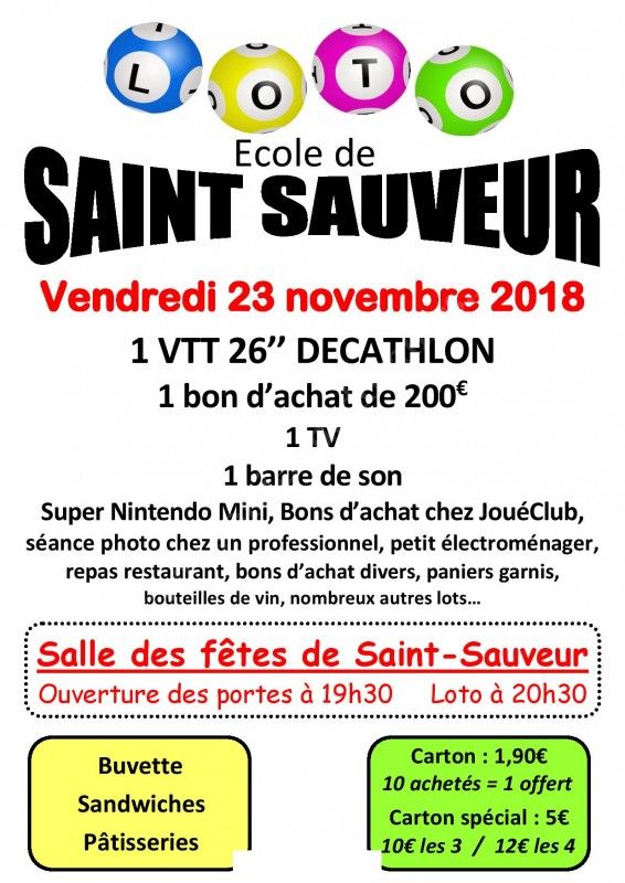 LOTO DE L'ECOLE organisé par l'école de Saint Sauveur.