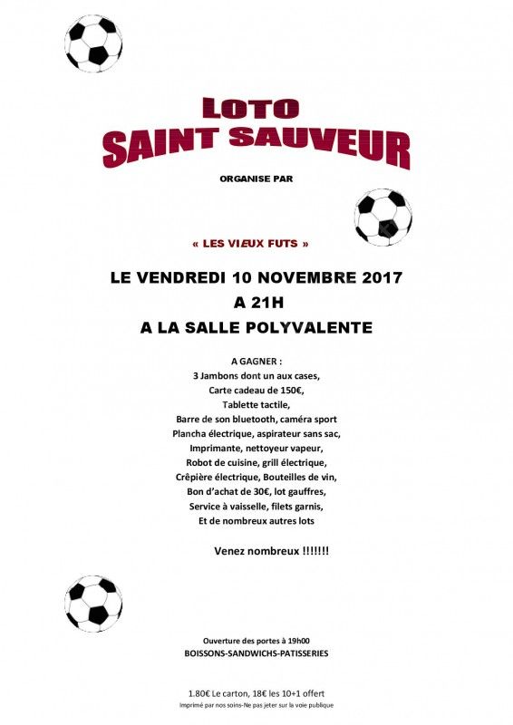 Loto organisé par "Les Vieux Fûts", une association de football loisir vétérans.