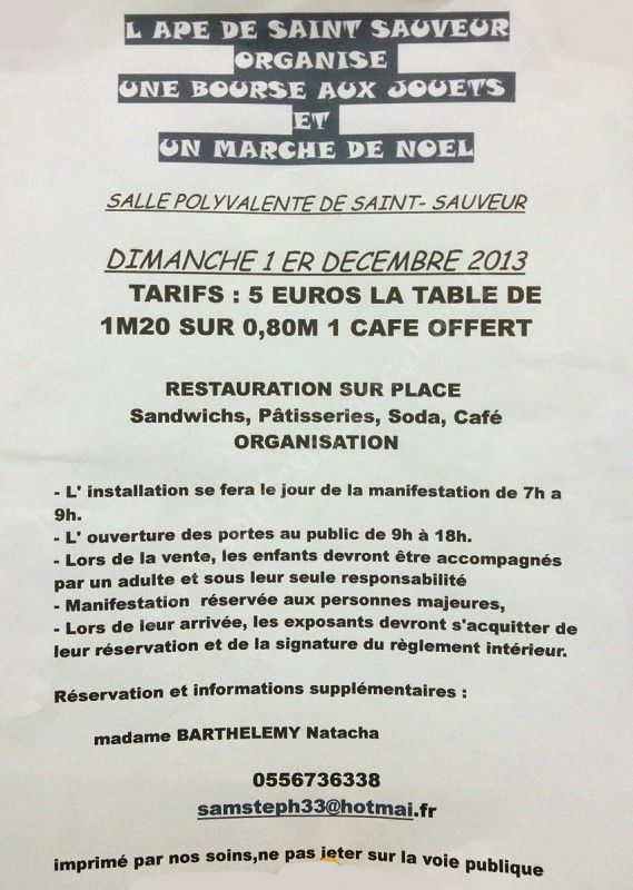 Tarifs : 5€ la table de 1m20 sur 0,80m (1 café offert)