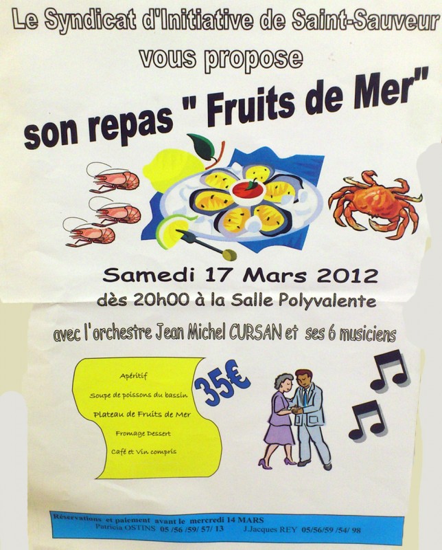 Le Syndicat d'Initiative de Saint Sauveur vous propose son repas "Fruits de Mer".
