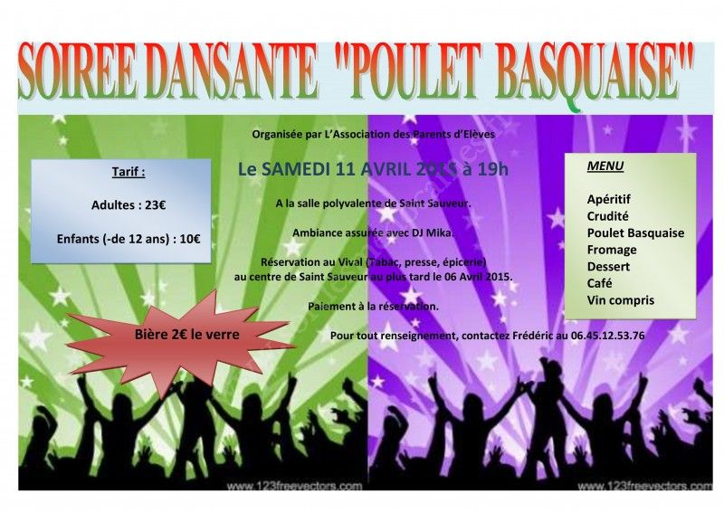 Nous organisons une soirée Poulet Basquaise dansante avec une ambiance assurée par DJ MIKA.