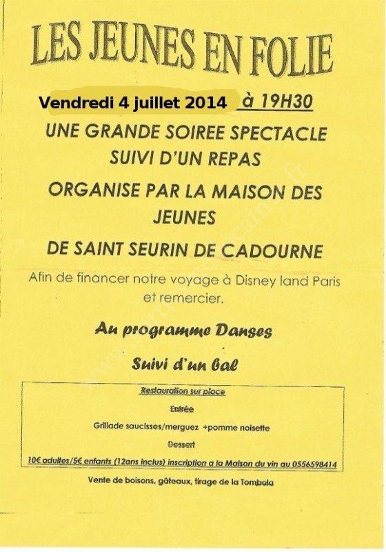Grande soirée spectacle suivi d'un repas organisé par la Maison de Jeunes de Saint-Seurin de Cadourne (afin de financer un voyage à Disney Land Paris).