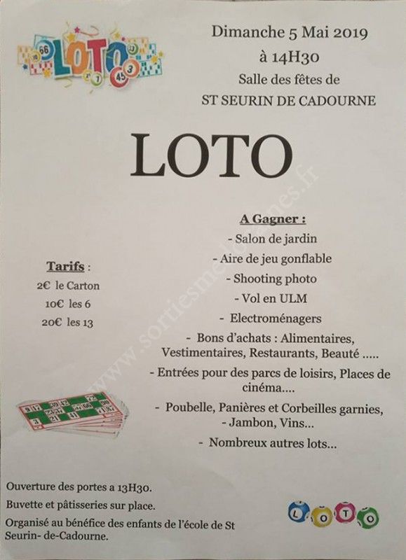 Loto organisé au bénéfice des enfants de l'école de Saint-Seurin de Cadourne.