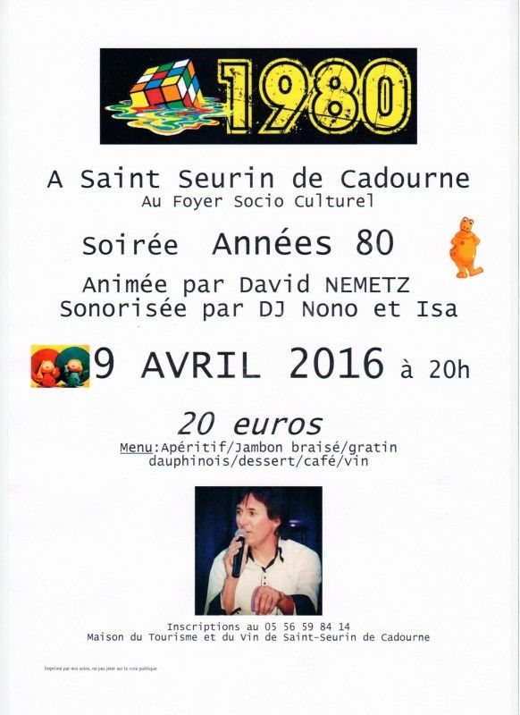 Soirée Années 80, repas animé par DAVID NEMETZ ET DJ NONO ET ISA.