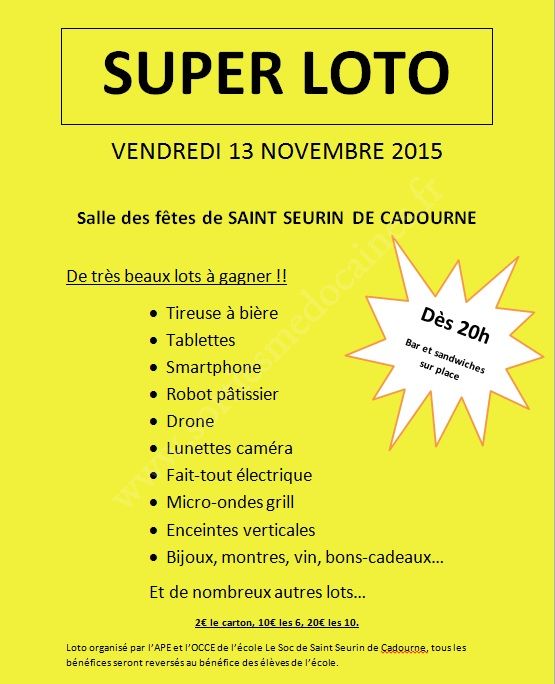 Loto organisé par l'APE et l'OCCE de l'école le Soc de St-Seurin de Cadourne.