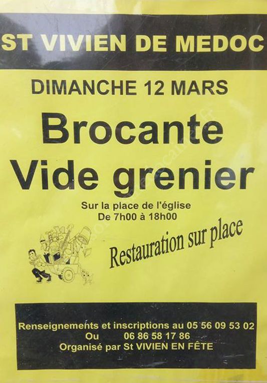 Brocante - vide grenier le dimanche 12 mars 2017 à St Vivien de Médoc.
