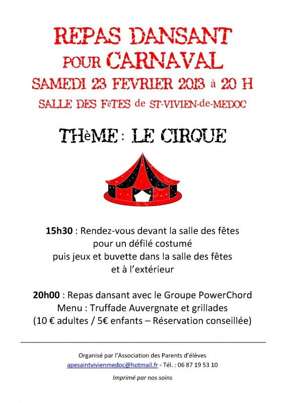 Le carnaval de St Vivien, organisé par l'association des parents d'élèves, a pour thème cette année: Le Cirque.