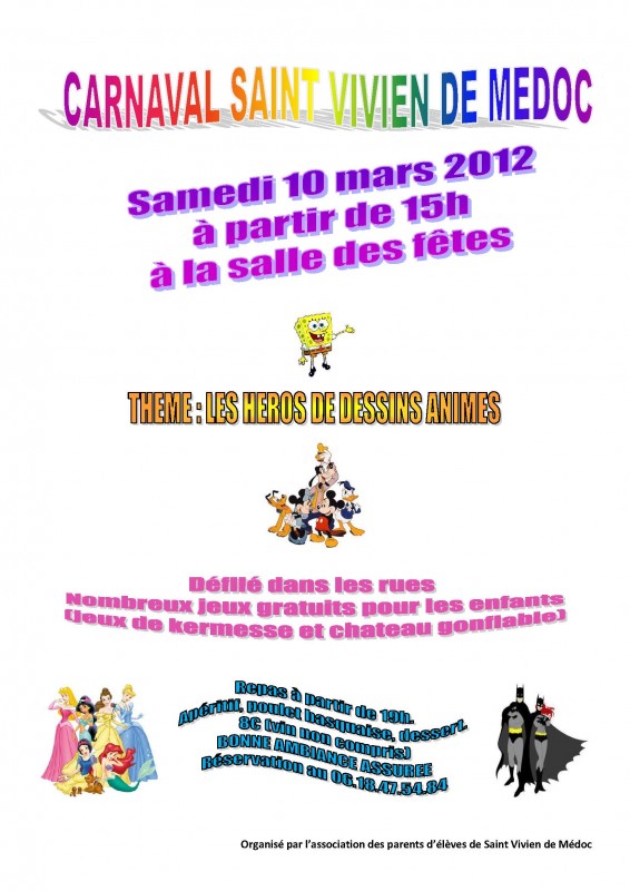 L'association des parents d'élèves de Saint Vivien de Médoc organise le carnaval qui a pour thème " Les Héros de Dessin Animé ".