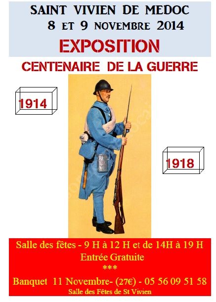 Dans le cadre de la commémoratin du centenaire de la déclaration de la guerre 14/18, la Mairie et les associations organisent une Exposition sur la Première Guerre Mondiale.