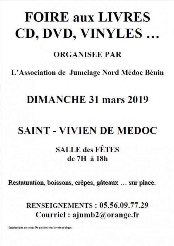 Foire aux Livres, CD, DVD, Vinyles organisée par l'association AJNMB.