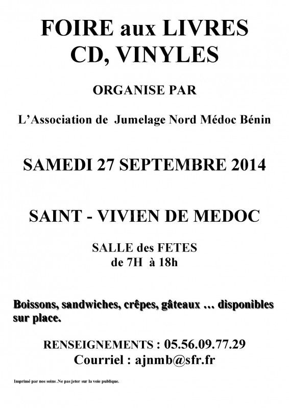 Foire aux Livres, CD, Vinyles organisé par l'Association de Jumelage Nord Médoc Bénin.
