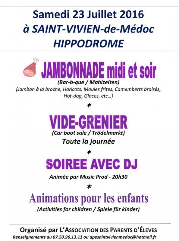 Jambonnade & Vide-Grenier organisés par L’ASSOCIATION DES PARENTS D’ÉLEVES.