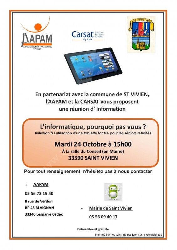 En partenariat avec la commune de Saint-Vivien, l'AAPAM et le CARSAT.