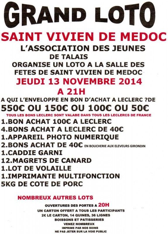 Loto organisé par l'Association des Jeunes de Talais.