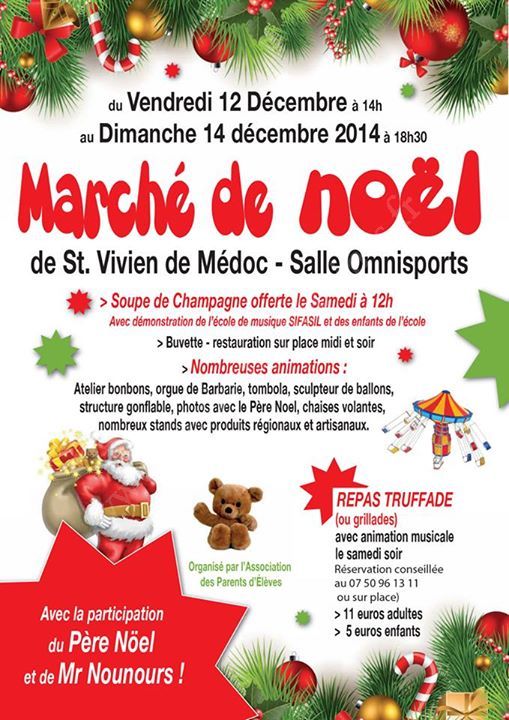 Marché de Noël organisé par les parents d'élèves de St Vivien de Médoc.