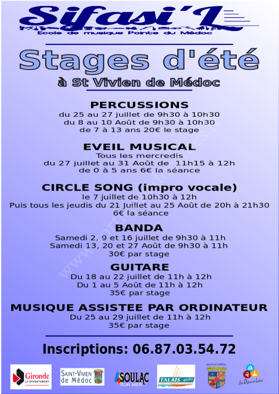 L'école de musique SIFASI'L organise des stages et ateliers musicaux tout au long de l'été pour petits et grands, adultes et enfants.