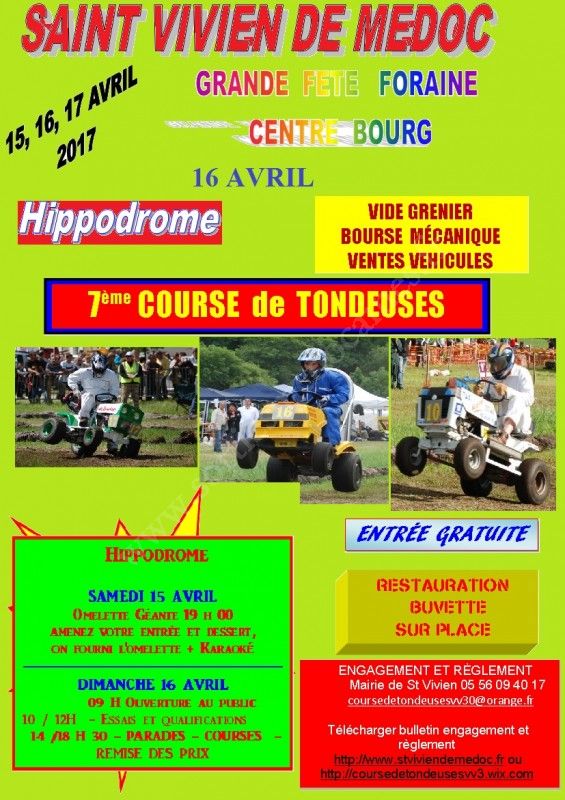 Réservation avant le 12 Avril 2017. (Bulletin d'inscription disponibles en téléchargement ci-dessous, sur le site de la mairie de Saint Vivien de Médoc - http://www.stviviendemedoc.fr - ou le site de l'organisateur)