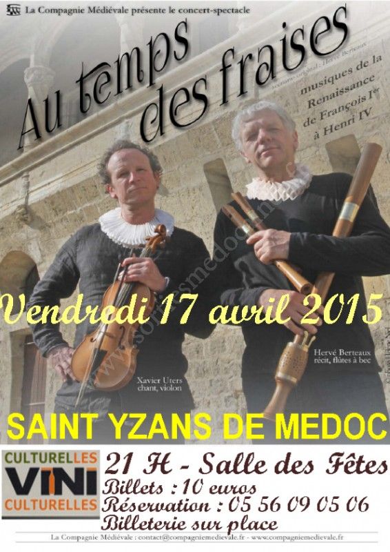 La mairie de SAINT YZANS DE MEDOC organise un spectacle présenté par LA COMPAGNIE MEDIEVALE "Au temps des fraises" l'histoire commence en 1515...