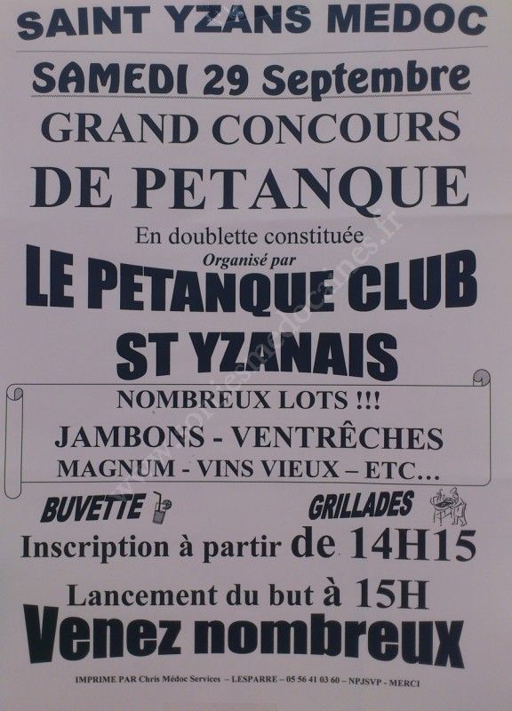 Grand concours de pétanque en doublette constituée organisé par le Pétanque Club St Yzanais.