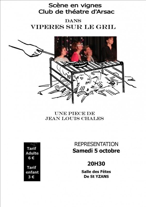 Le club de théâtre d'Arsac " SCENE EN VIGNES " jouera la pièce de Jean Louis Châles VIPERES SUR LE GRIL.