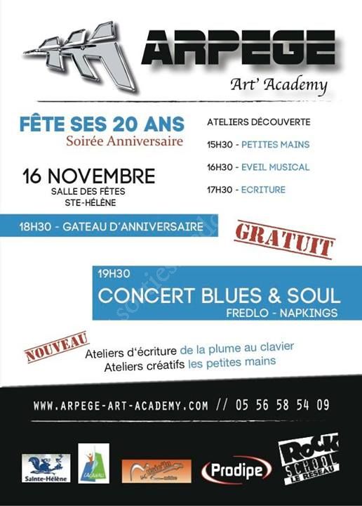 - 19h30 : Concert Blues & Soul - "Fredlo - Napkings"