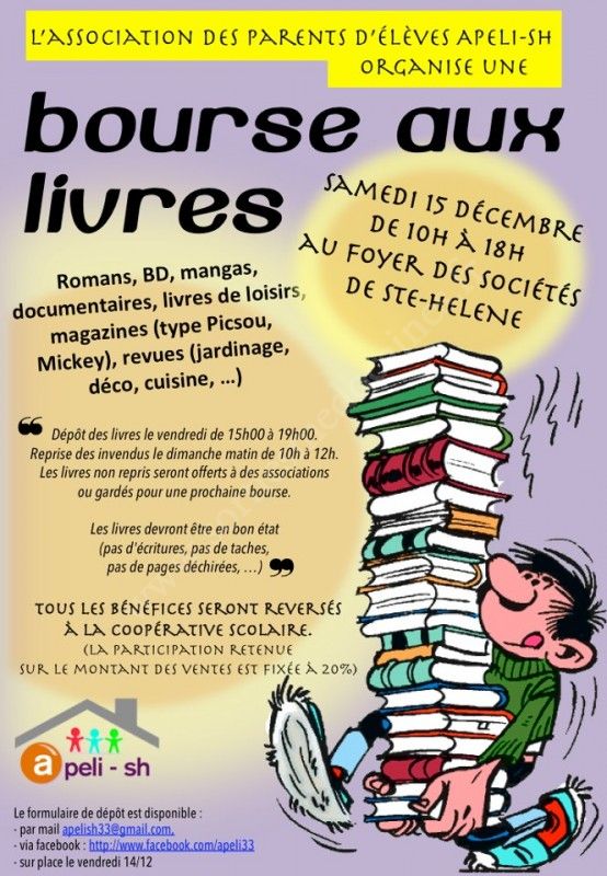 Dépôt des livres le vendredi de 15h00 à 19h00.