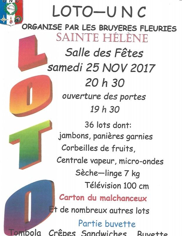 Loto de l'UNC Sainte Hélène organise par les bruyères fleuries.