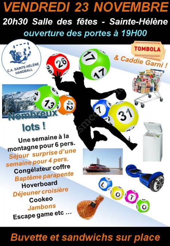 De nombreux lots à gagner dont : Une semaine à la montagne pour 6 personnes, Séjour surprise d'une semaine pour 4 personnes, Congélateur coffre, Baptême parapente, Hoverboard, Déjeuner croisière, Cookéo, Jambon, ...