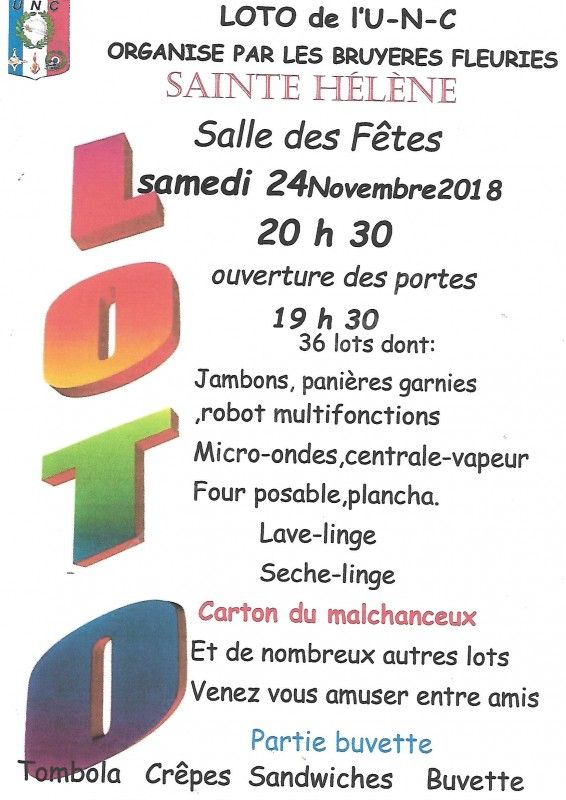 Loto de l'UNC Sainte Hélène organisé par les bruyères fleuries.