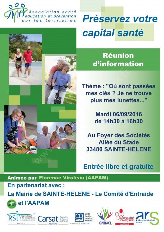 Réunion d'information sur le thème : "Où sont passées mes clés ? Je ne trouve plus mes lunettes..."