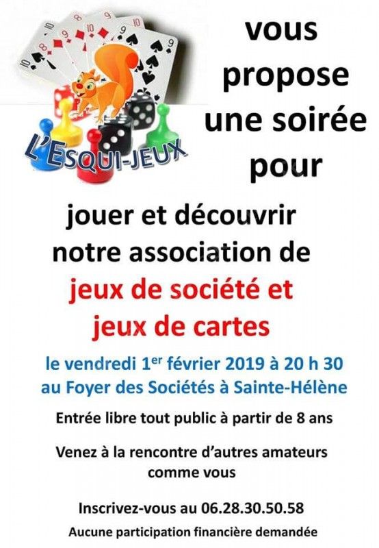 L'Esqui Jeux vous propose une soirée pour jouer et découvrir leur association de jeux de sociéte et jeux de cartes.