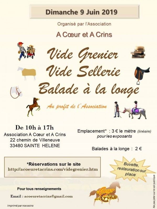 Vide-grenier - Vide sellerie - Balade à la longe organisé par l'association à coeur et à crins.