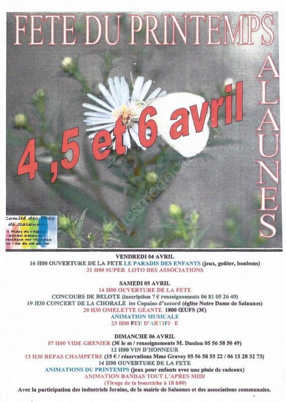 Organisée par le Comité des Fêtes avec la participation des industriels forains, de la Mairie de Salaunes et des associations communales.