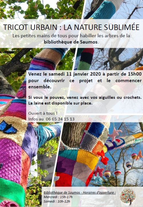 Venez habiller les arbres de la bibliothèque de Saumos ! Ce projet au long cours s'adresse à toutes les petites mains !