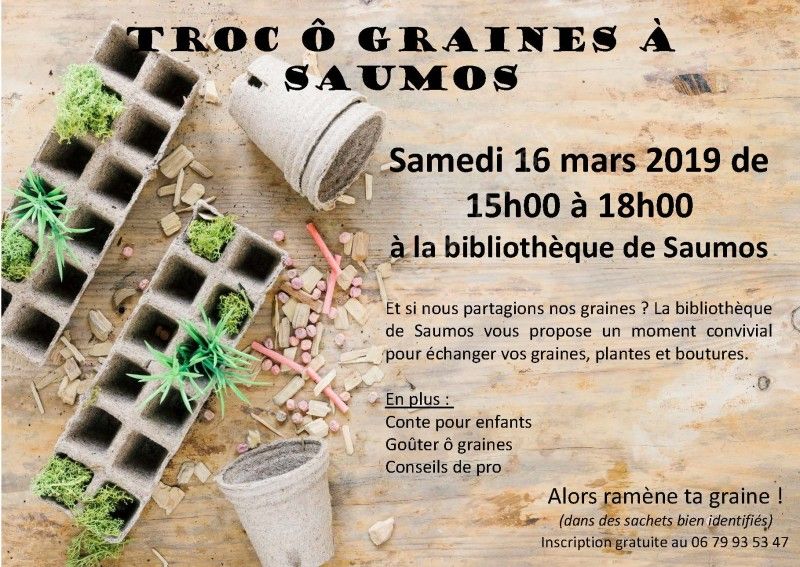 La bibliothèque de Saumos vous propose un moment convivial pour échanger vos graines, plantes et boutures.