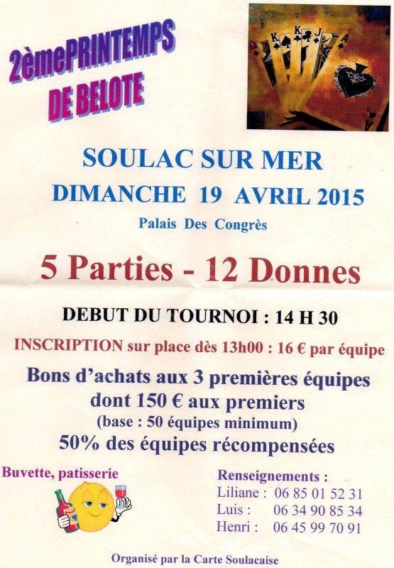 2ème Printemps de Belote organisé par la Carte Soulacaise.